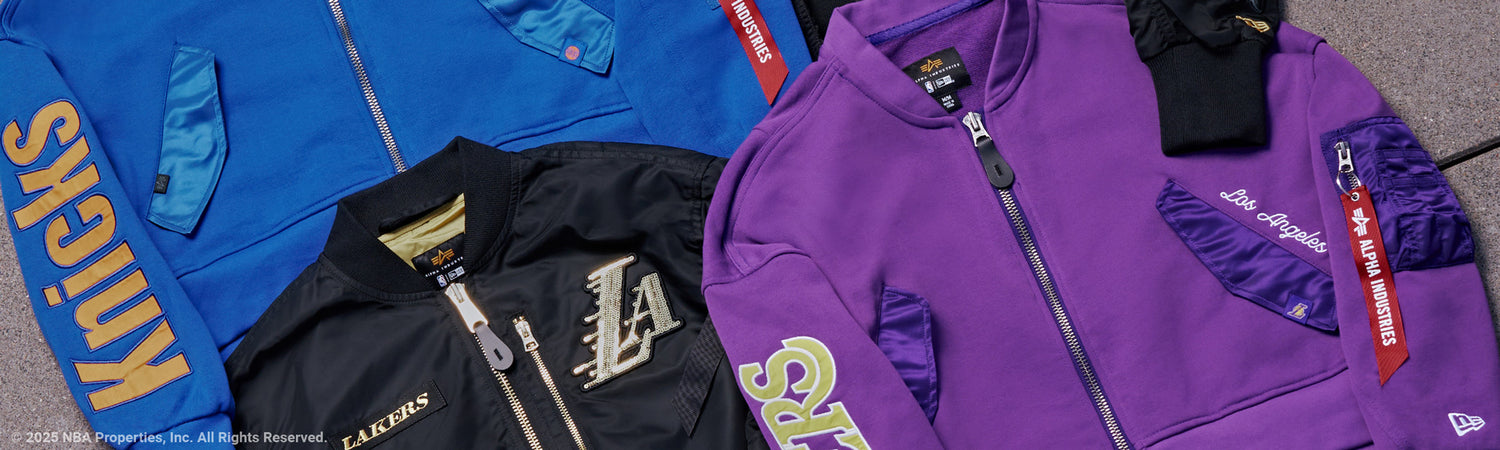Show your team pride with the Alpha Industries x New Era NBA collection. With options in the light-weight MA-1 Zip Up Hoodie, Mid-weight MA-1 Bomber Jacket, and heavy-weight N-3B Mod Parka, we have you covered no matter the weather.