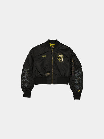 SAN DIEGO PADRES X ALPHA X NEW ERA L-2B CROPPED BOMBER JACKET WOMENS