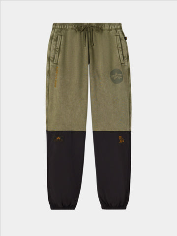 The OVO X ALPHA INDUSTRIES GARMENT DYE FLEECE PANTS feature a garment dye treatment, unique color block constructions, and branded prints and embroidery throughout.